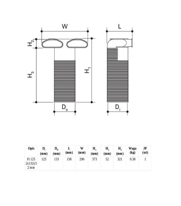 Skrzynka rozprężna fi 125 mm, podejście do anemostatu - 2 x podejście pod kanał płaski (2 x 132 x 52 mm) FRÄNKISCHE